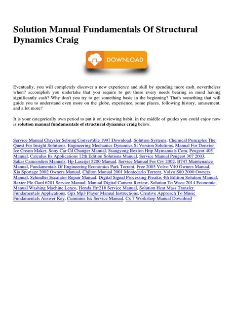 Download Link FUNDAMENTALS OF STRUCTURAL DYNAMICS CRAIG SOLUTION MANUAL Get Books Without Spending any Money! PDF